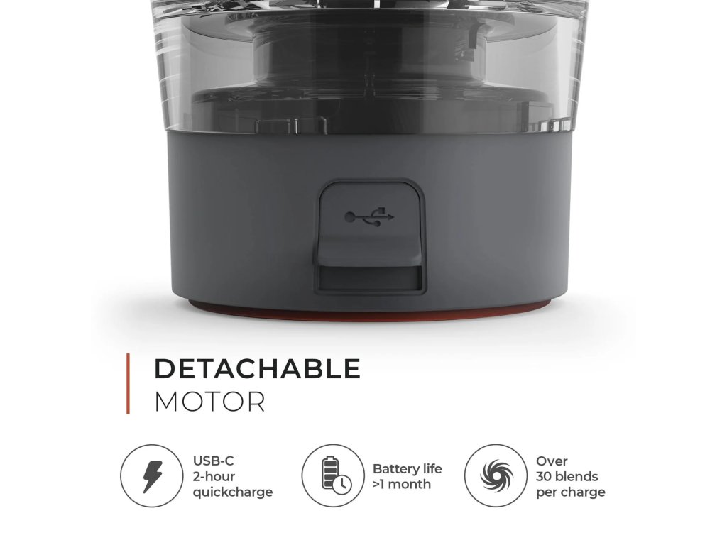S ergonomickým víčkem a 100% zárukou nepropustnosti můžete PROMiXX PRO s jistotou hodit do své sportovní tašky. Láhev je vyrobena z nárazuvzdorného Tritanu pro trvanlivost a odolnost vůči zápachu a obsahuje integrovaný NUTRiPOD pro práškové suplementy. Napájecí jednotka má nově navrženou funkci ochrany před pádem Halo pro ty „uh oh“ okamžiky a je plně dobíjecí přes USB pomocí přiloženého kabelu USB-C. PROMiXX PRO má baterii s dlouhou výdrží a obvykle více než 90 mixů na jedno nabití. Na základě 15sekundových cyklů míchání.