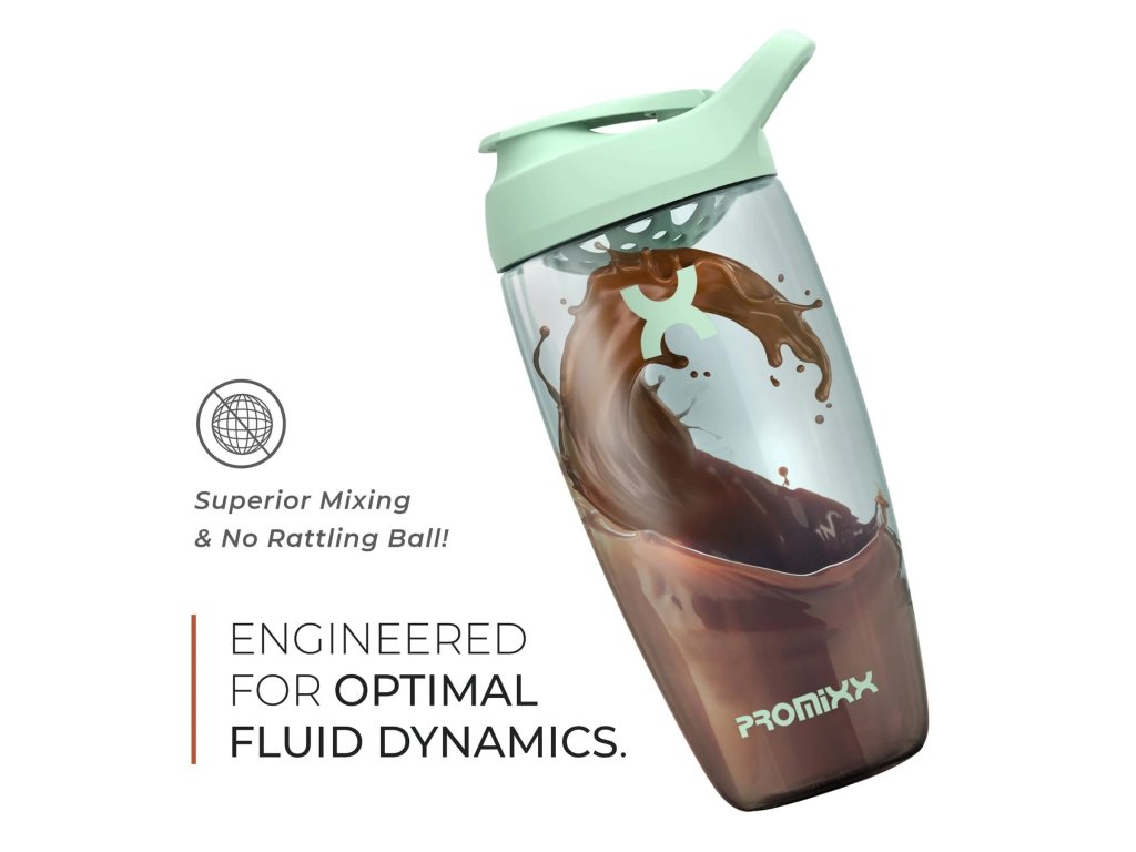 Shaker láhev od PROMiXX byla navržena s důrazem na jednoduchost, funkčnost a eleganci.