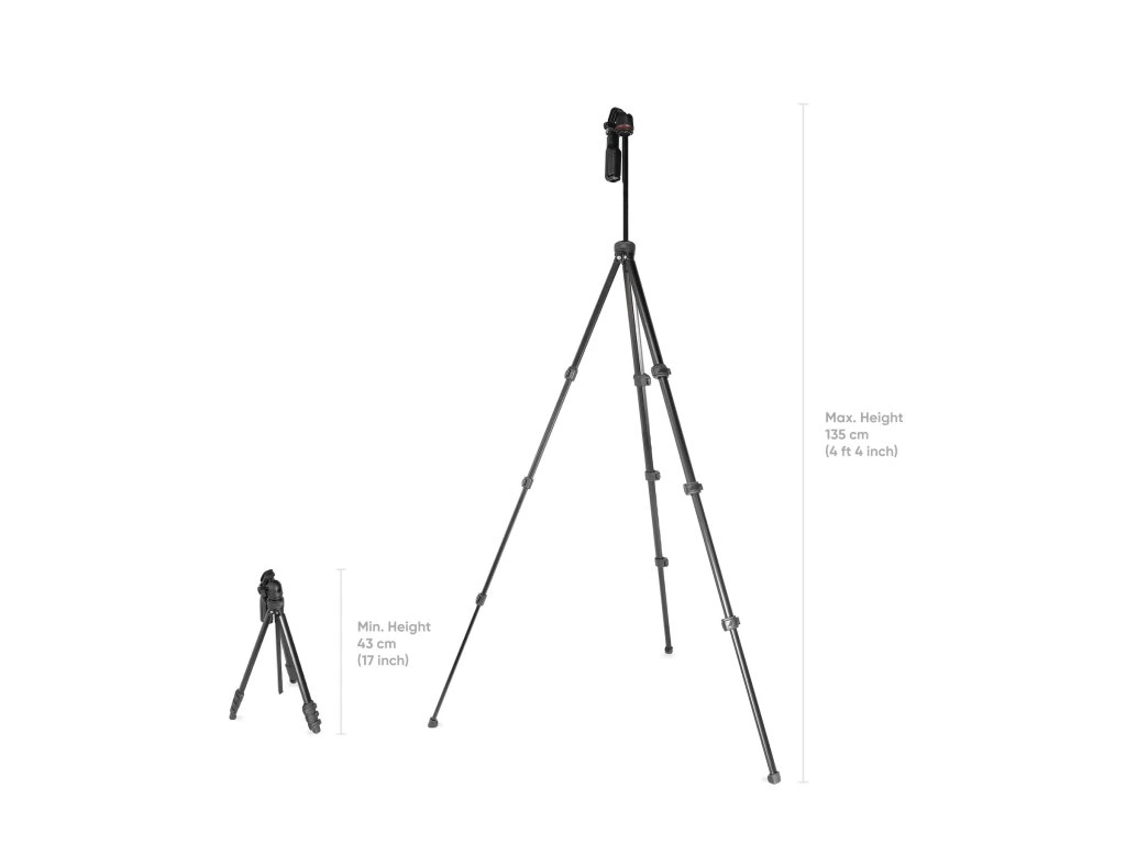 TT hliníkový stativ se složí na 43 cm a váží jen 0,66 kg. Snadno se vejde do vaší tašky, batohu nebo příručního zavazadla pro jednoduchou přenositelnost.