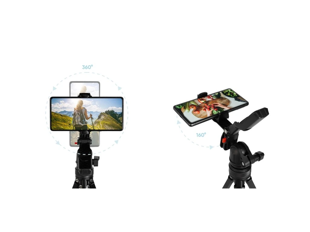 TT hliníkový stativ umožňuje 360° horizontální rotaci a 160° vertikální rotaci, což vám dává volnost zachytit úžasné fotografie a záběry z jakéhokoli úhlu a výšky.
