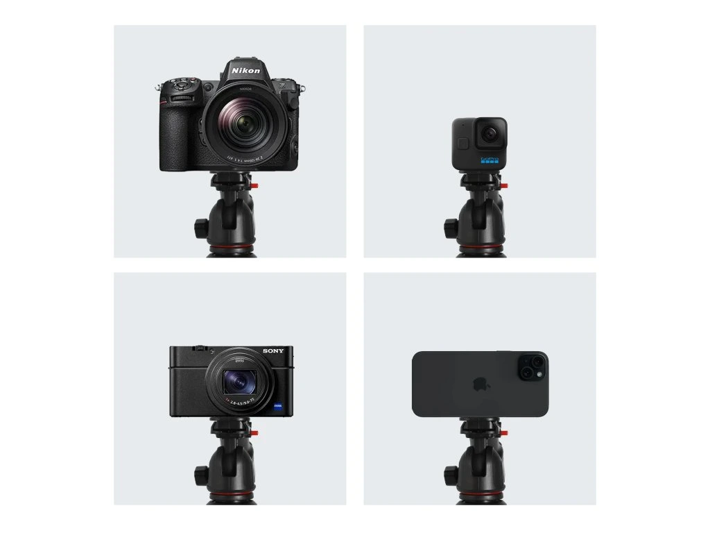 Vybaven 1/4 palcovým šroubem, TT hliníkový stativ je kompatibilní s digitálními fotoaparáty, DSLR, videokamerami, akčními kamerami GoPro, LED kruhovými světly a dalšími zařízeními.
